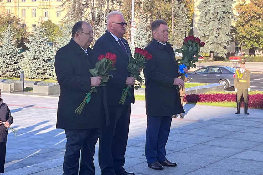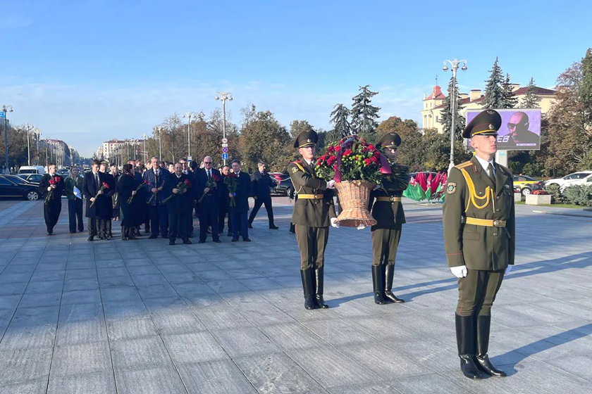 Форум начался с церемонии возложения цветов к Вечному огню на площади Победы в белорусской столице.