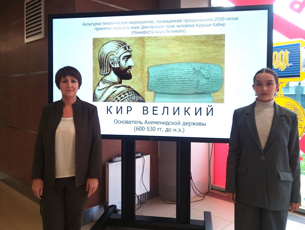 14 октября 2025 года во Всероссийском государственном университете кинематографии им. С.А. Герасимова (ВГИК) состоялось организованное посольством Республики Таджикистан в Российской Федерации культурно-тематическое мероприятие в честь празднования 2550-летия принятия первой в мире Декларации прав человека Куруши Кабира, уникального исторического документа – Манифеста Кира Великого.