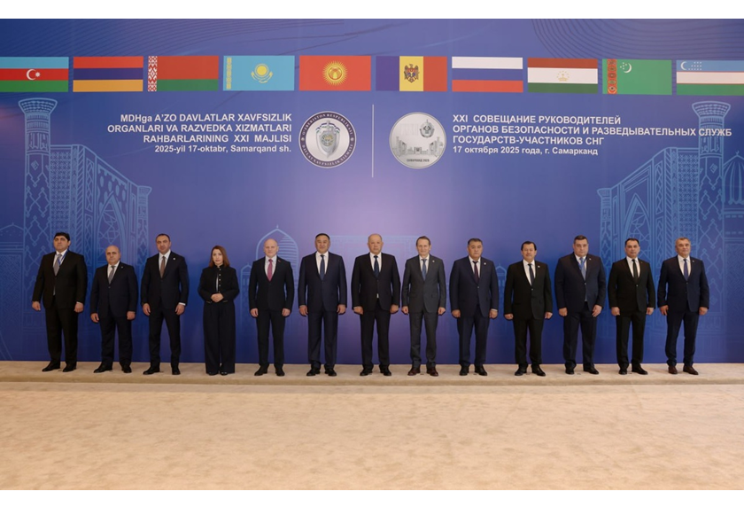 17 октября 2025 года в г. Самарканде состоялось очередное ХХI заседание Совещания руководителей органов безопасности и разведывательных служб государств-участников СНГ по вопросам разведывательной деятельности. В мероприятии приняли участие делегации специальных ведомств Азербайджана, Армении, Беларуси, Казахстана, Кыргызcтана, России, Таджикистана, Туркменистана и Узбекистана.