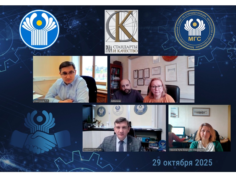 В рабочем совещании 29 октября 2025 года приняли участие сотрудники РИА «Стандарты и качество», начальник отдела научно-технического сотрудничества и инноваций департамента экономического сотрудничества Исполнительного комитета СНГ и Ответственный секретарь МГС СНГ – директор и сотрудники Бюро по стандартам.
