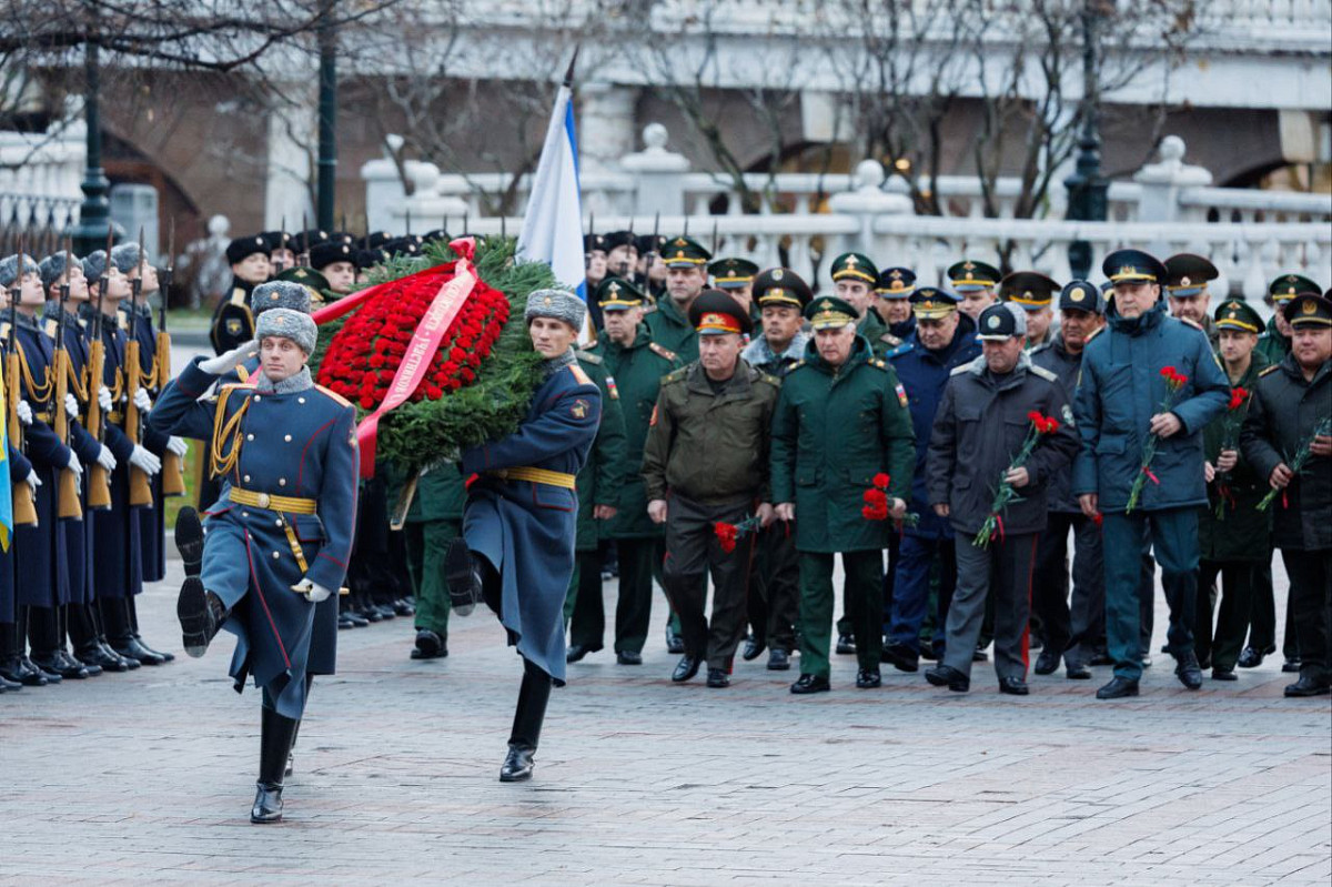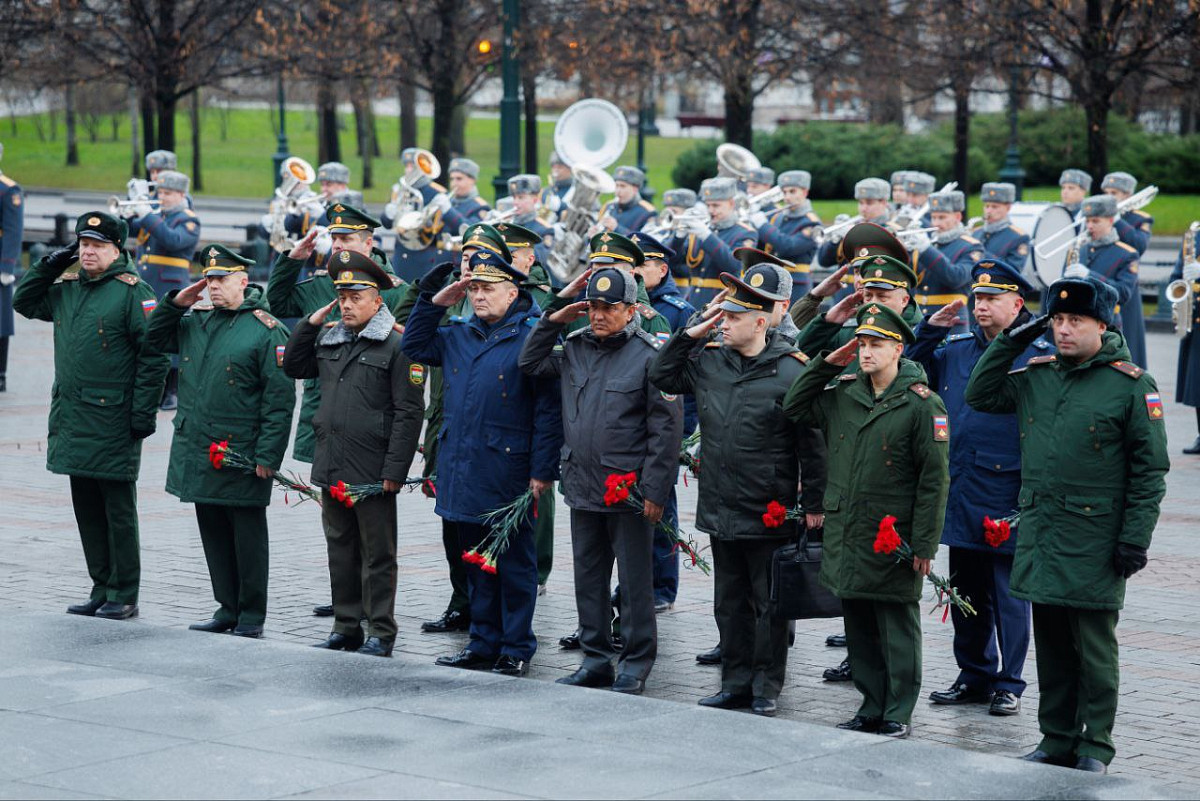 Перед заседанием Комитета военные делегации стран СНГ возложили цветы к Вечному огню у Могилы Неизвестного Солдата и почтили минутой молчания память защитников Отечества.
