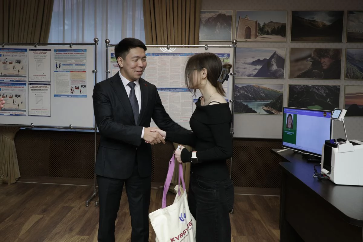 Молодым избирателям, которым довелось впервые голосовать на избирательном участке, были вручены памятные подарки от Посольства Кыргызстана в Беларуси.
