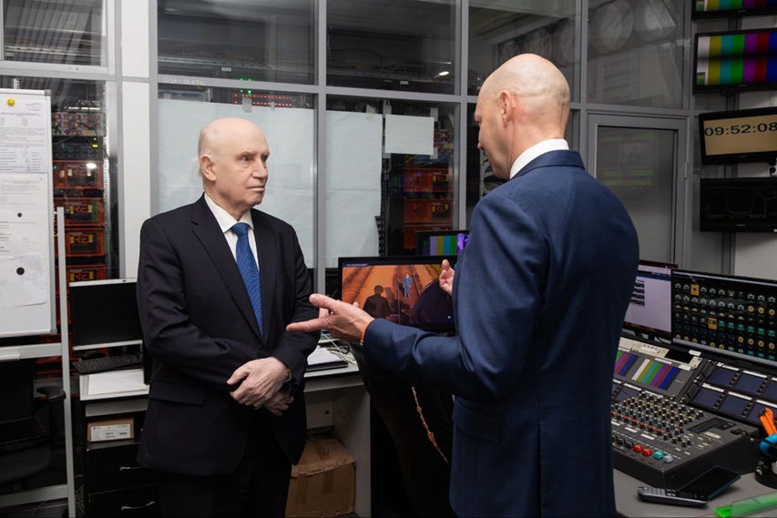 Генеральный секретарь СНГ осмотрел основные студии и аппаратные МТРК «Мир», встретился с коллективом телерадиокомпании и отметил высокий уровень профессионализма и технической оснащенности производственной базы.