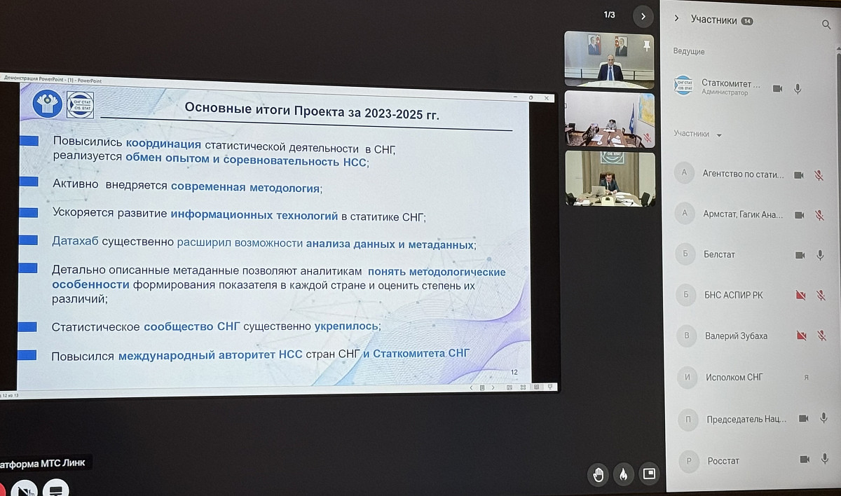 По результатам заседания участники одобрили План работ по реализации проекта «Развитие статистики СНГ» и утвердили программу Статкомитета СНГ на 2026 год.