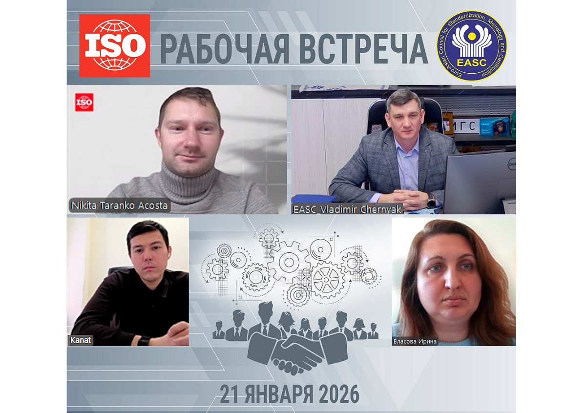 В рабочей встрече приняли участие Региональные координаторы ИСО Никита Таранко Акоста и Канат Токушев и директор Бюро по стандартам – Ответственный секретарь МГС Владимир Черняк со специалистами Бюро по стандартам МГС СНГ.