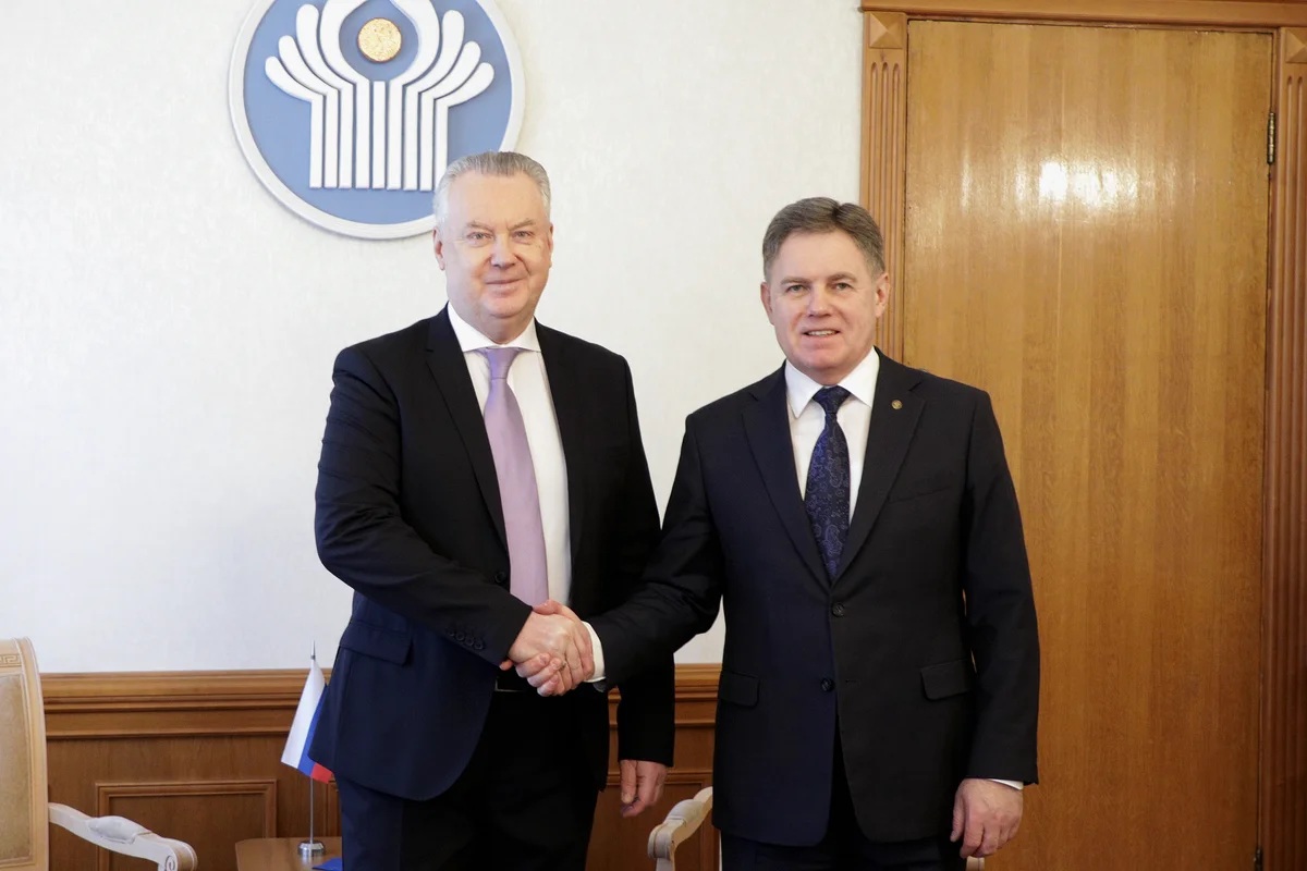 2 февраля 2026 года в Минске состоялась рабочая встреча первого заместителя Генерального секретаря СНГ Игоря Петришенко с вновь назначенным Постоянным представителем Российской Федерации при уставных и других органах Содружества Александром Лукашевичем.