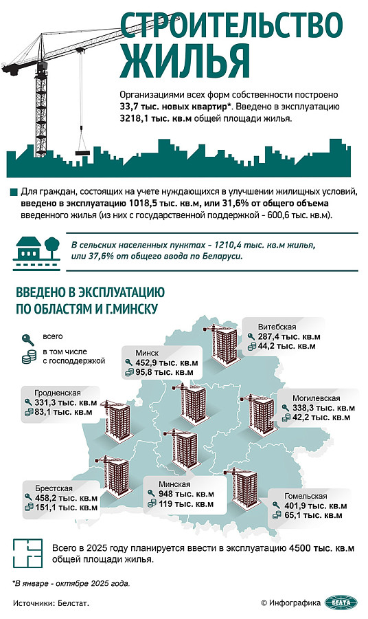 В сельских населенных пунктах - 1210,4 тыс. кв.м жилья, или 37,6% от общего ввода по Беларуси.