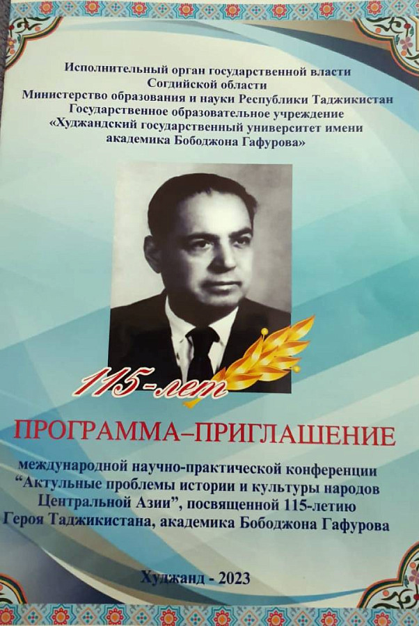 В тот же день в здании Музыкального драматического театра им. Камола Худжанди состоялось пленарное заседание международной научно-практической конференции «Актуальные проблемы истории и культуры народов Центральной Азии», посвященной 115-летию Героя Таджикистана, академика Бободжона Гафурова, на которой с докладом на тему «Бободжон Гафуров – патриарх советского востоковедения» выступил директор ИВ РАН А.Аликберов, а Н.Романова, помимо своего выступления, зачитала слова приветствия от коллектива Ученого совета Института, подписанные председателем Ученого совета, научным руководителем ИВ РАН академиком В.Наумкиным.